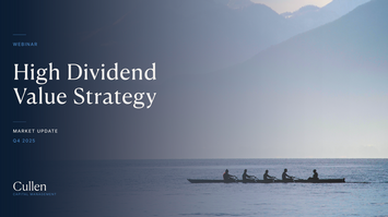 The High Dividend Value Equity strategy, launched in 1994, invests in large capitalization equities with low Price/Earnings and Price/Book ratios, along with High Dividend Yields; this disciplines value approach aims to deliver strong long-term capital appreciation and above-average income with significantly less volatility. The strategy's competitive, risk-adjusted returns over full market cycles are driven by strong upmarket capture and consistent down-market protection.